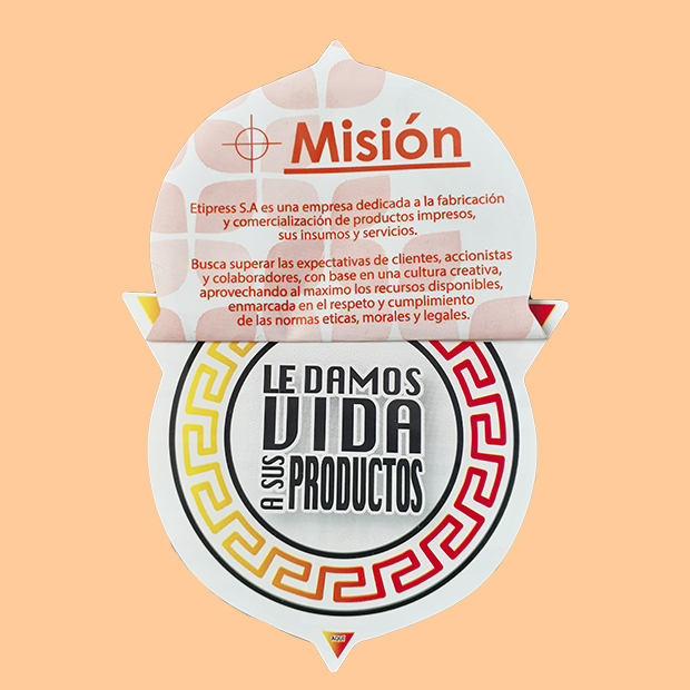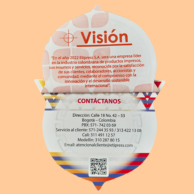 Producimos etiquetas Booklet mejor conocidas como “etiquetas libro” o “desplegables” están integradas por varias páginas, estas páginas suelen tener más información para los consumidores. Los usos gráficos que poseen estas etiquetas son bastante amplios, no solo se puede añadir texto si no también, ilustraciones o diseños que enriquecen aún más el estilo de su presentación. Enfocadas aun mas en industrias como la farmacéutica y de alimentos.